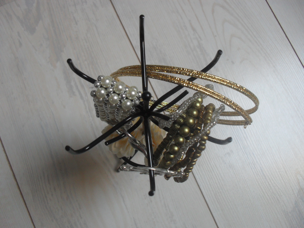 Het past makkelijk, ik heb zelfs nog een paar haakjes over en natuurlijk kun je ook meerdere sieraden aan één haakje hangen. De haarklipjes met bloemen heb ik er een beetje tussengezet, gelukkig kan dat bij dit kapstokje. Hij is echt multifunctioneel, ik ben er heel blij mee!