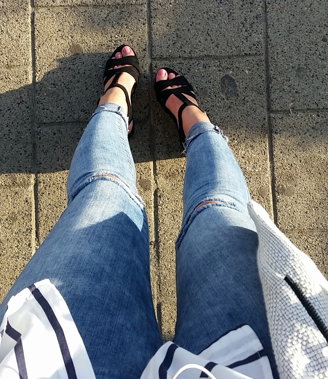 Rond 18.00 was ik thuis en verwisselde ik mijn comfy kleren voor een iets meer fashionable outfit: Bershka blouse, Pull&Bear ripped jeans en mijn Bershka wedges.