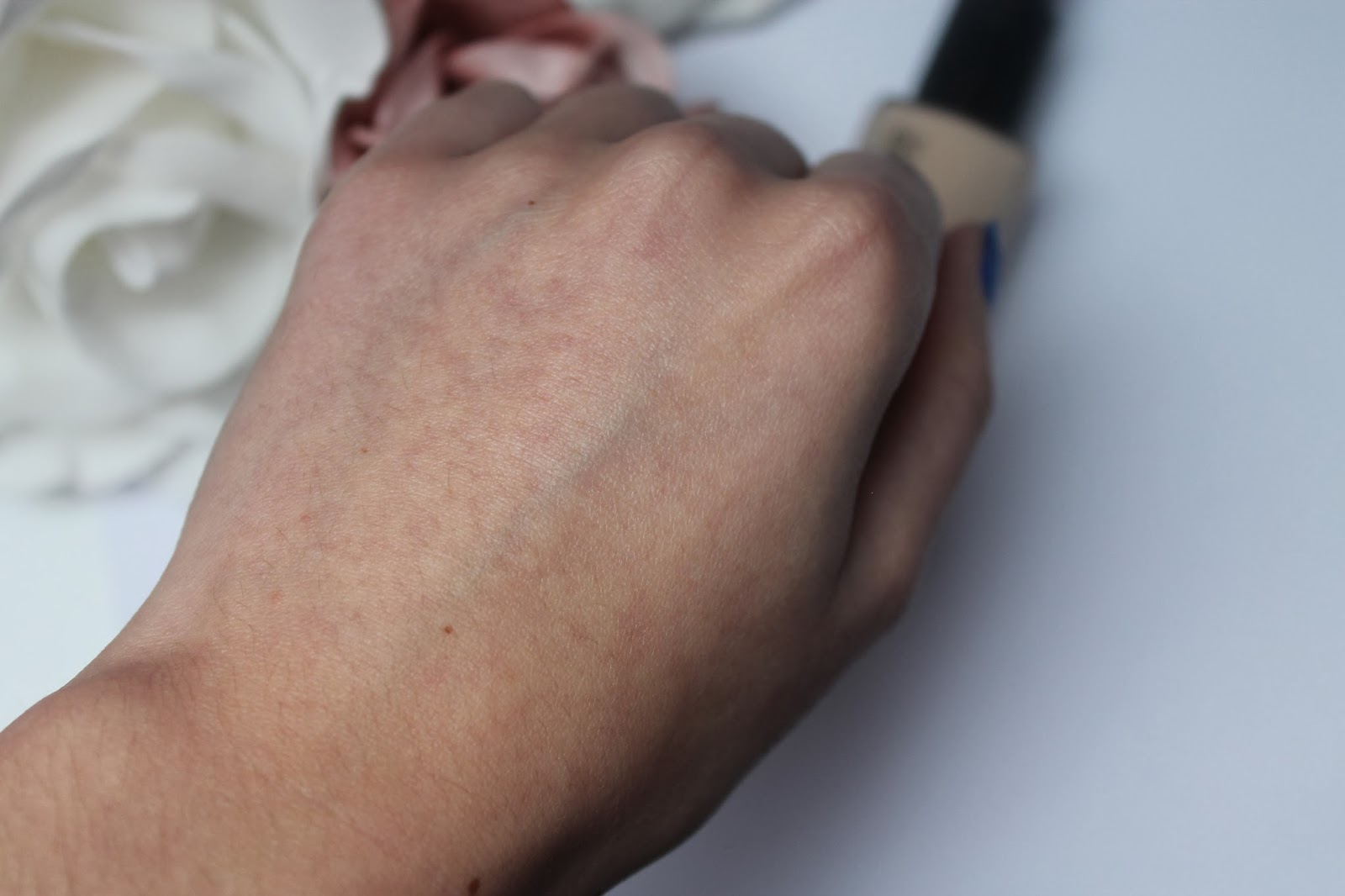 De dekking is best goed. Je ziet de foundation niet zitten en zoals je ziet is mijn hand volledig mat. Maar hoe is de foundation op mijn gezicht?