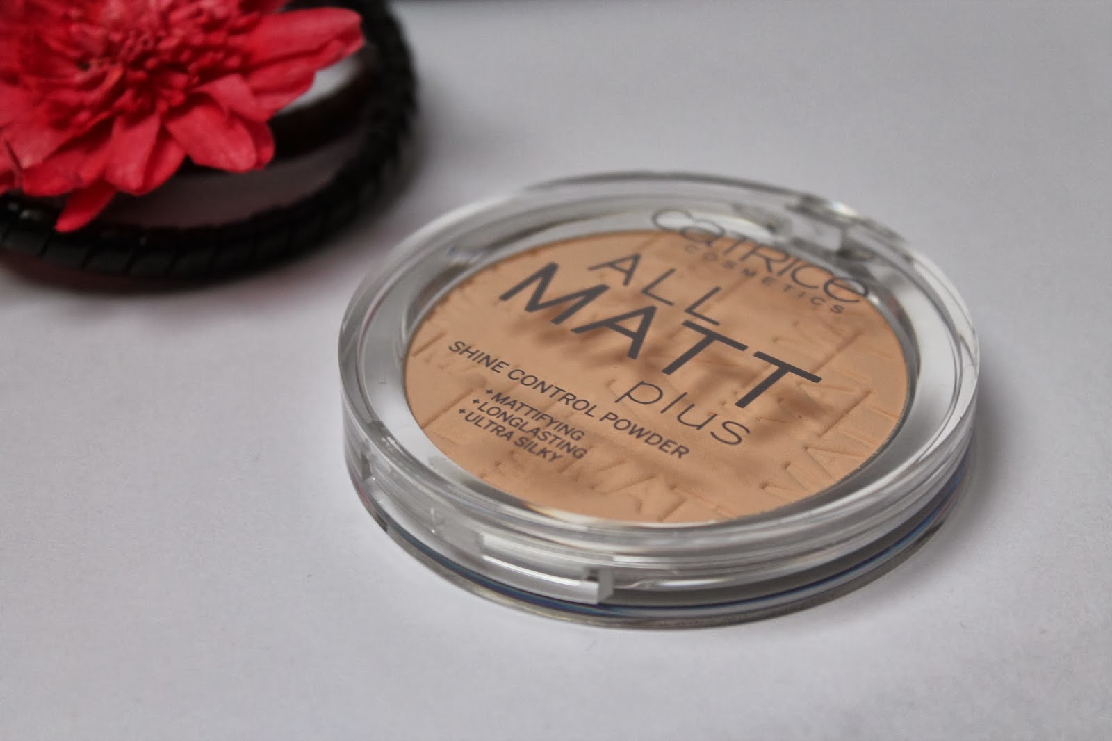 De poeder is sinds hij in het assortiment is al eens vernieuwd. Ik heb hem een paar maanden geleden in het schap zien liggen, maar toen waren er nog geen letters in gedrukt. Nu worden ze alleen nog met de gedrukte letters erin verkocht, maar het is wel dezelfde poeder. De poeder maakt samen met de All Matt Plus foundation deel uit van de All Matt Plus collectie van Catrice.